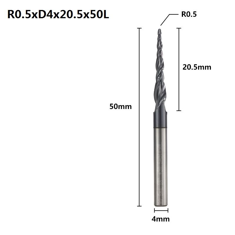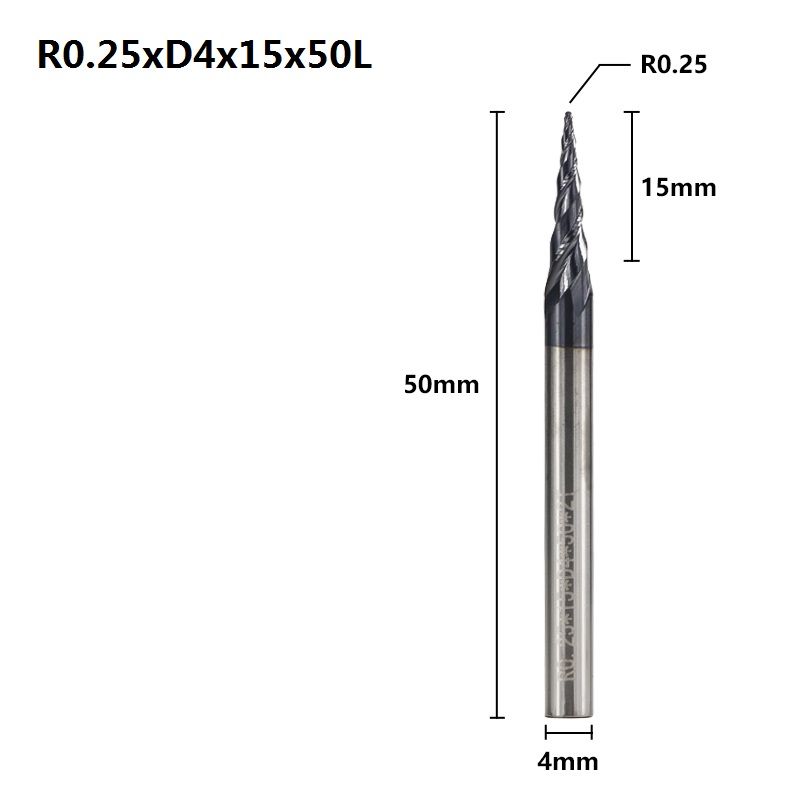 R0.25xD4x20.5x50L Fraise à bout conique en carbure de tungstène R0.25-R2.0 CNC, fraises pour bois et métal, outil de fraisage CNC ""Nipseyteko