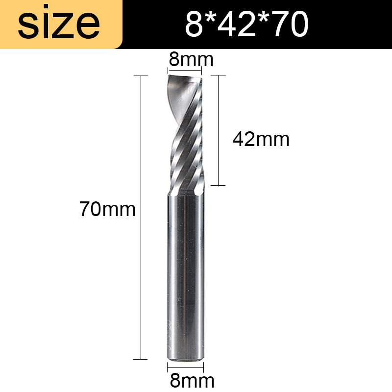 8x42x70 1pcs Fraises à spirale en carbure de tungstène, 1 cannelure, outils CNC pour bois acrylique MDF 3.175 4 6 8mm ""Nipseyteko