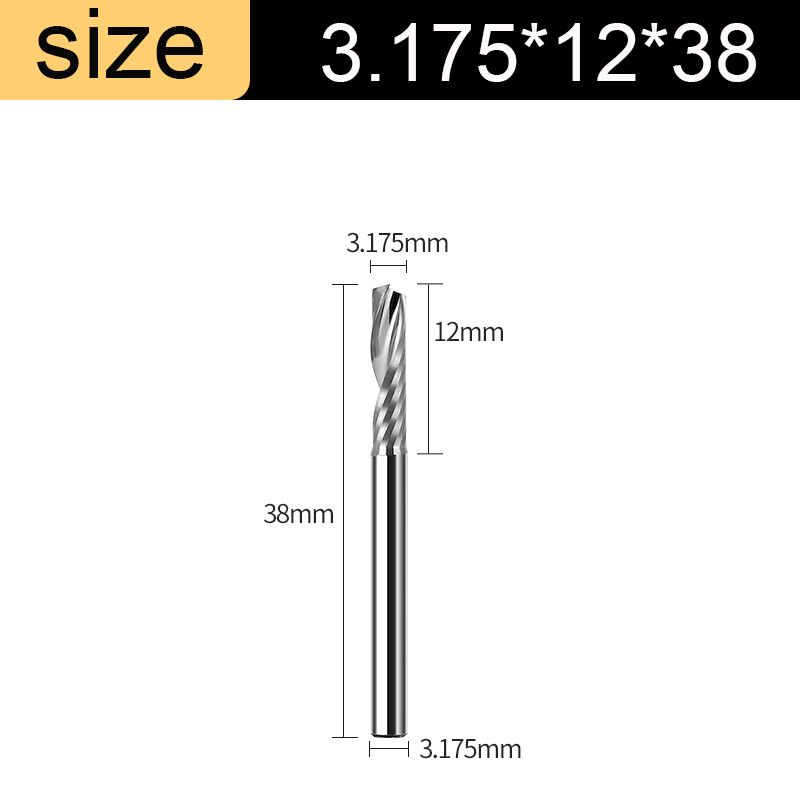 3.175x3.175x12 5pcs Fraises à spirale en carbure de tungstène, 1 cannelure, outils CNC pour bois acrylique MDF 3.175 4 6 8mm ""Nipseyteko