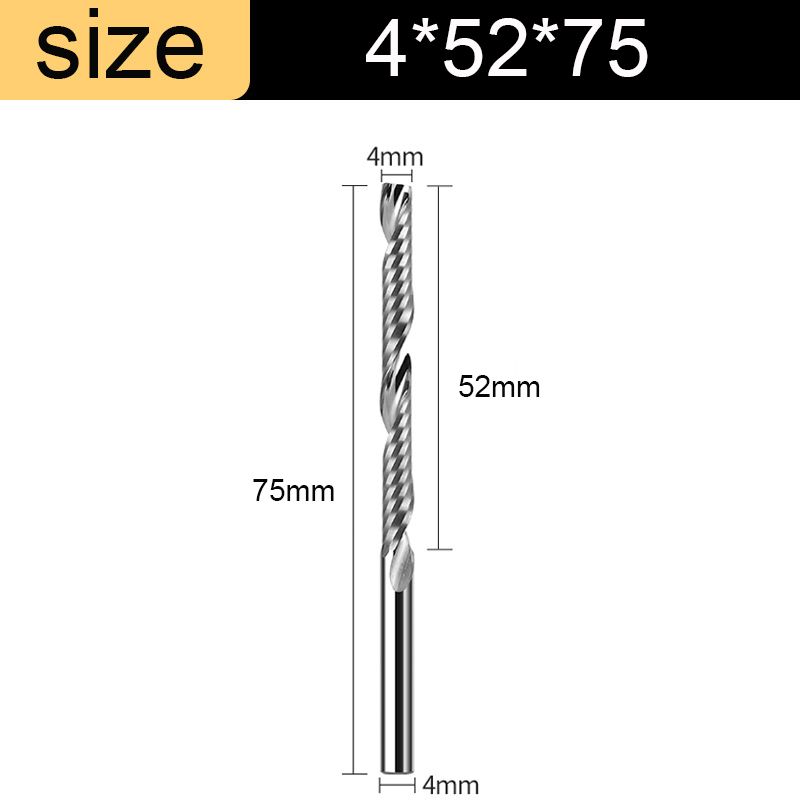 4x4x52 1pcs Fraises à spirale en carbure de tungstène, 1 cannelure, outils CNC pour bois acrylique MDF 3.175 4 6 8mm ""Nipseyteko