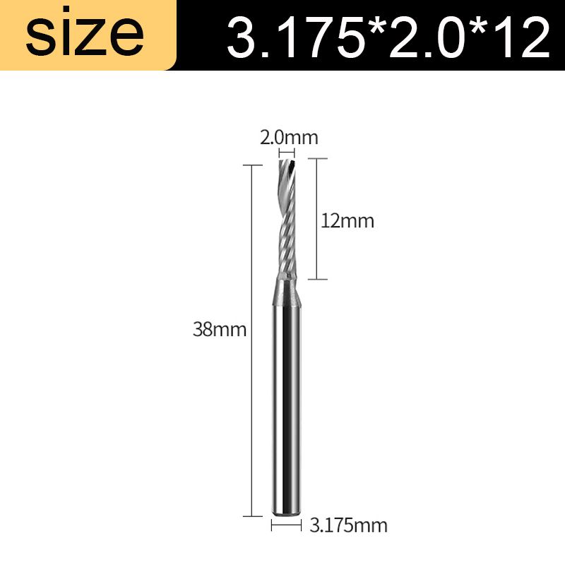3.175x2x12 5pcs Fraises à spirale en carbure de tungstène, 1 cannelure, outils CNC pour bois acrylique MDF 3.175 4 6 8mm ""Nipseyteko