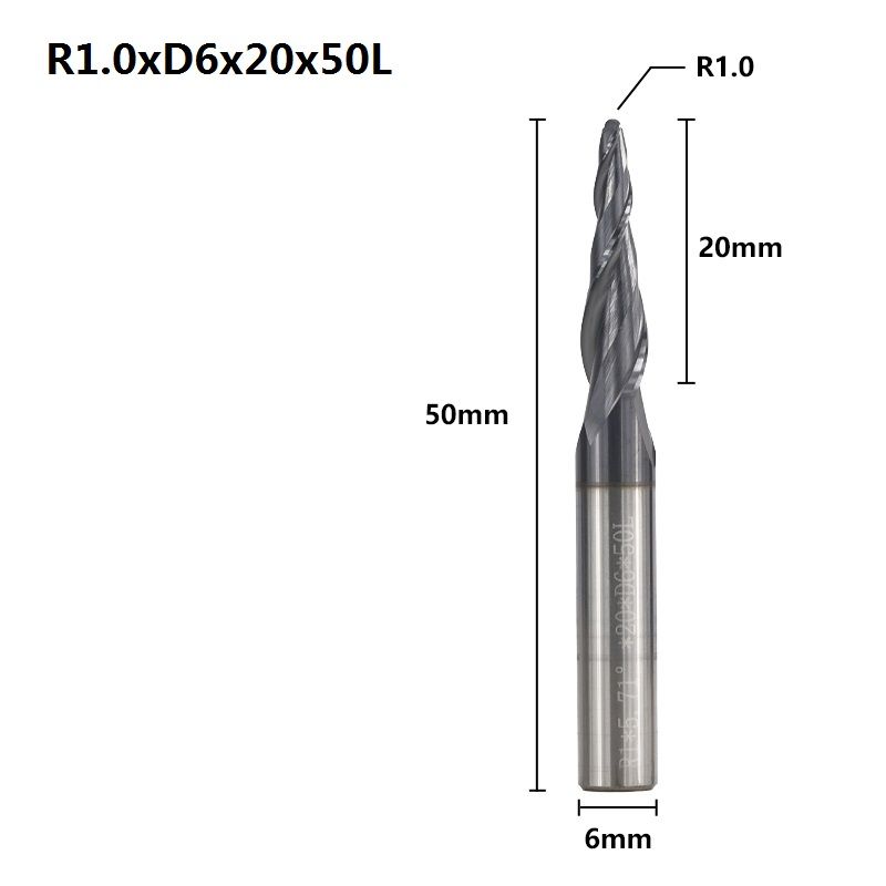 R1.0xD6x20x50L Fraise à bout conique en carbure de tungstène R0.25-R2.0 CNC, fraises pour bois et métal, outil de fraisage CNC ""Nipseyteko