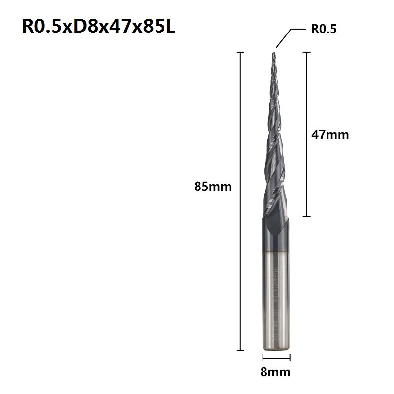 R0.5xD8x47x85L Fraise à bout conique en carbure de tungstène R0.25-R2.0 CNC, fraises pour bois et métal, outil de fraisage CNC ""Nipseyteko