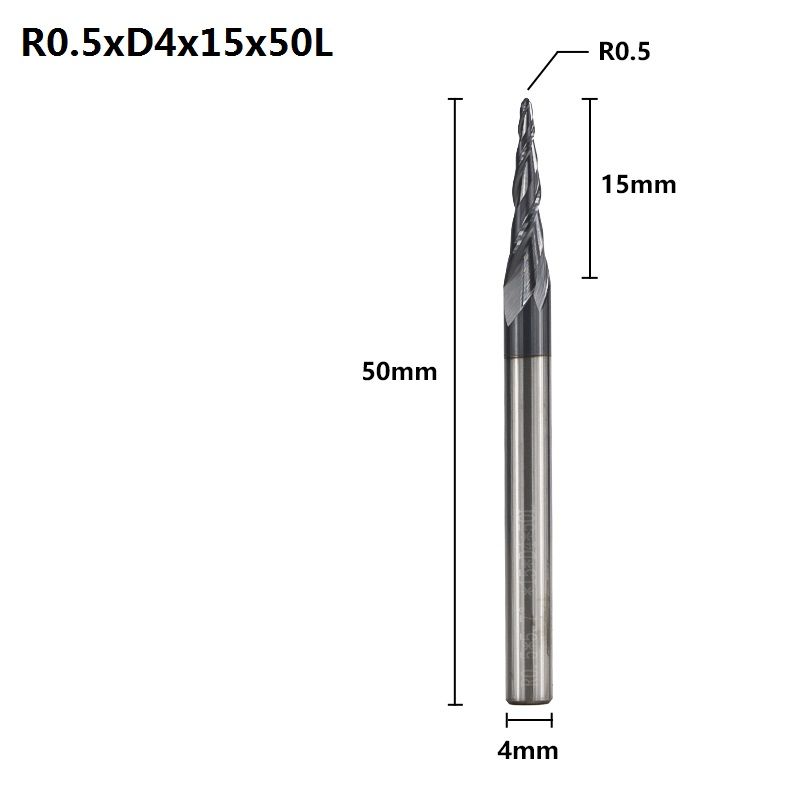 R0.5xD4x15x50L Fraise à bout conique en carbure de tungstène R0.25-R2.0 CNC, fraises pour bois et métal, outil de fraisage CNC ""Nipseyteko
