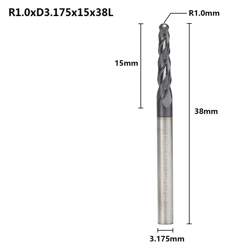 R0.5xD3.175x15x38L Fraise à bout conique en carbure de tungstène R0.25-R2.0 CNC, fraises pour bois et métal, outil de fraisage CNC ""Nipseyteko