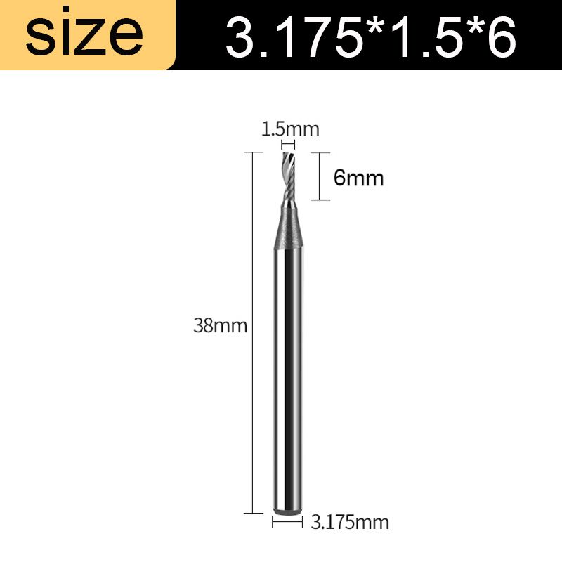 3.175x1.5x6 10pcs Fraises à spirale en carbure de tungstène, 1 cannelure, outils CNC pour bois acrylique MDF 3.175 4 6 8mm ""Nipseyteko