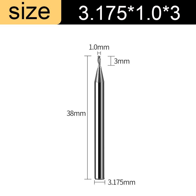 3.175x3.175x32 1pcs Fraises à spirale en carbure de tungstène, 1 cannelure, outils CNC pour bois acrylique MDF 3.175 4 6 8mm ""Nipseyteko