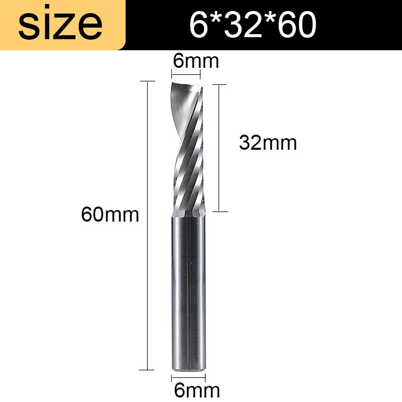 6x32x60 1pcs Fraises à spirale en carbure de tungstène, 1 cannelure, outils CNC pour bois acrylique MDF 3.175 4 6 8mm ""Nipseyteko