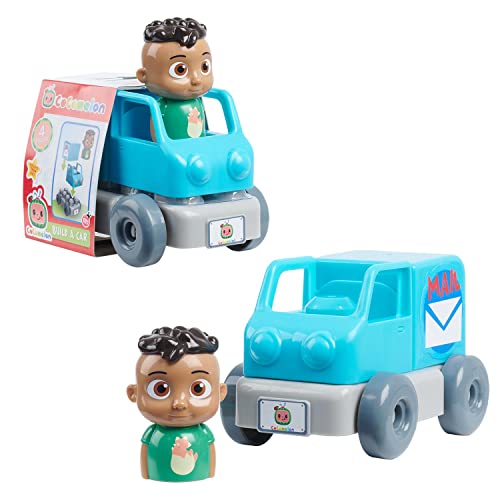 COCOMELON, Véhicule avec Figurine, 4 pièces, Construction à Briques, Modèle Cody Camion Courrier, Jouet pour Enfants dès 18 Mois, CCM132