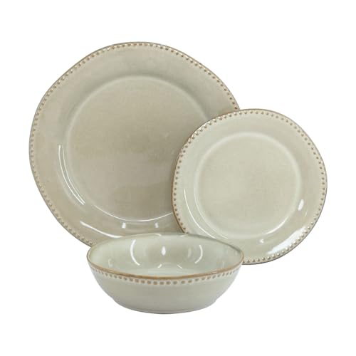 WeHome Rita Service de vaisselle 6 personnes, 18 pièces, assiettes colorées en céramique, modèle Rita, assiettes modernes, 3 tailles, lavable au lave-vaisselle, compatible avec four à micro-ondes