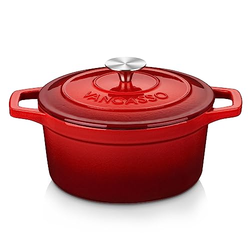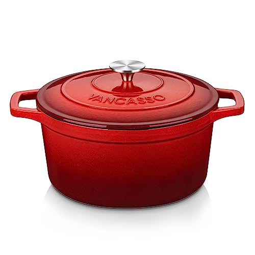 vancasso Cocotte Ronde en Fonte Émaillée 5L, 26cm, x13cm, 5.95kg, Marmite avec Couvercle Pour Tous Feux dont Induction Rouge
