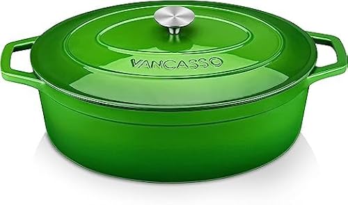 vancasso Cocotte Ovale en Fonte Émaillée 8L, 37cm, x13cm, 8.15kg, Marmite avec Couvercle Pour Tous Feux dont Induction Vert