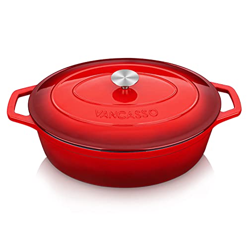 vancasso Cocotte Ovale en Fonte Émaillée 8L, 37cm, x13cm, 8.15kg, Marmite avec Couvercle Pour Tous Feux dont Induction Rouge
