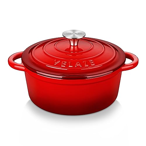 Velaze Cocotte ronde en fonte émaillée de 6 l – Antiadhésive double poignée avec couvercle – Idéale pour la cuisson du pain, le ragoût et le rôti, excellente étanchéité pour toutes les sources de