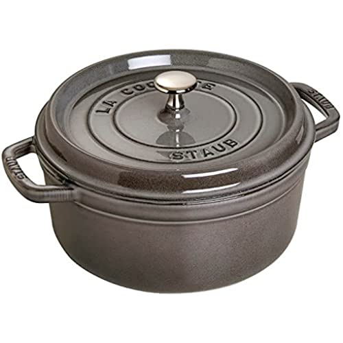 STAUB Cocotte en Fonte Émaillée avec Couvercle, Tous feux dont induction, 2 à 3 personnes, Ronde, 22 cm, 2,60 L, 4,7 kg, Gris Graphite