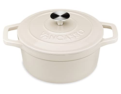 vancasso Cocotte Ronde en Fonte Émaillée 2L, 20cm, x9.5cm, 3.4kg, Marmite avec Couvercle Pour Tous Feux dont Induction Beige