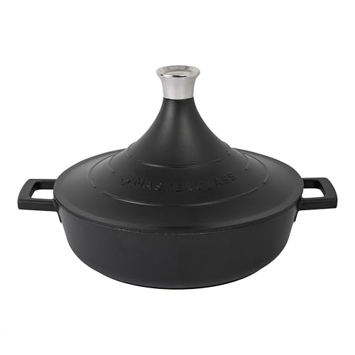 MasterClass Plat à tajine en Fonte d'aluminium avec Couvercle Conique Auto-arrosant, 5 L, cocotte Ronde antiadhésive Passant de la Plaque au Four, Compatible Lave-Vaisselle et Four, 28 cm, Noir