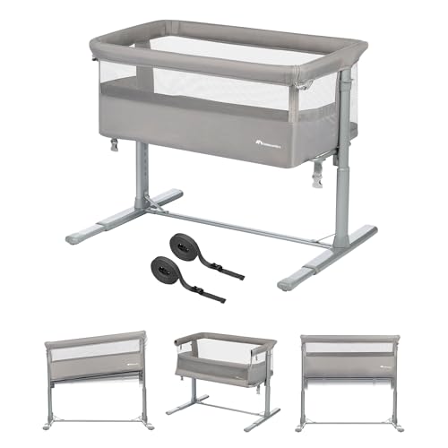 Lit Bébé, Berceau Cododo avec Matelas, Lit d'Appoint pour Bébé, Hauteur Réglable, Inclinable, Compatible avec Différents Lits, Facile à Installer et à Transporter, 6 Mois-9 kg, Gris