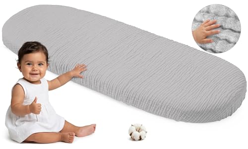 Medi Partners Drap Housse Nacelle 86x40cm Bebe Matelas Lit Couffin Cododo Landau - 100% Coton Mousseline Ovale Poussette Bébé Fitted Sheets Cover pour Mattress (Gris)