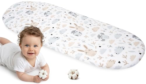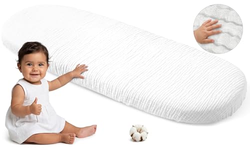 Medi Partners Drap Housse Nacelle 86x40cm Bebe Matelas Lit Couffin Cododo Landau - 100% Coton Mousseline Ovale Poussette Bébé Fitted Sheets Cover pour Mattress (Blanc)