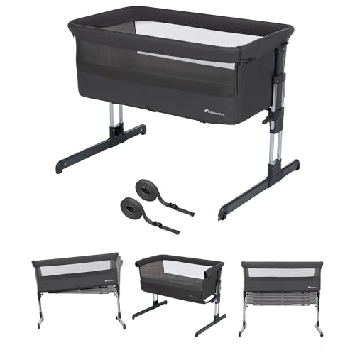 Bebeconfort Calidoo, Lit Cododo Bébé et Berceau Bébé 2-en-1, 0-6 mois (0-9 kg), Berceau Cododo Inclinable, 5 Hauteurs, Grand Matelas Rembourré, Côtés en Filet, Côté Pliable Facilement, Tinted Graphite