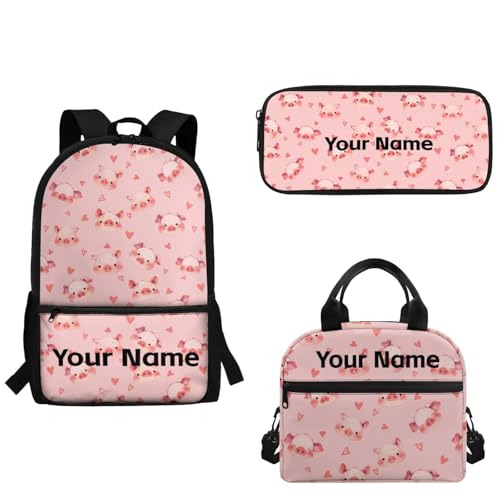 xixirimido Lot de 3 sacs à dos de 43,2 cm pour enfants, boîte à déjeuner, trousse à crayons pour école primaire, collège et lycée, Joli cœur de cochon, Taille unique, Sac à dos décontracté