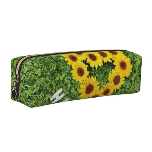 Grande trousse à crayons avec nœuds en forme de cœur et herbe - Trousse de maquillage portable pour bureau, collège, lycée, étudiants, filles, garçons, multicolore, Taille unique, Trousse de beauté