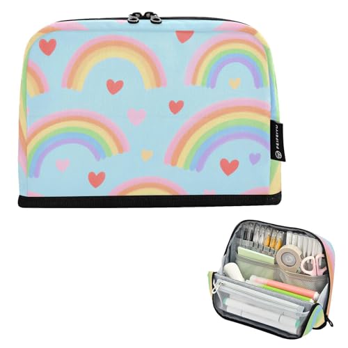 Oudrspo Trousse à Crayons Grande capacité Arc-en-Ciel Nuage Amour Coeur Blanc boîte à Crayons Pochette pour collège/lycée Bureau collège Adulte Fille et garçon