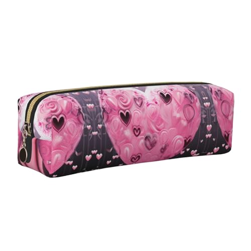 WXWJSHMGC Trousse à crayons simple en cuir imprimé cœur avec poche métallique à fermeture éclair, pochette de rangement pour filles, garçons, étudiants, collège, doré, Taille unique, Trousse de beauté