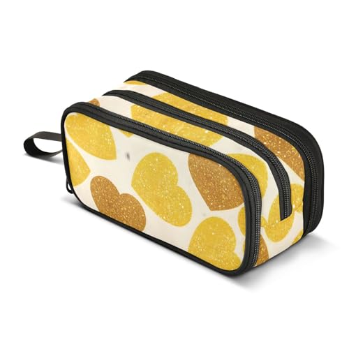 Grande trousse à crayons dorée avec motif cœur - Trousse de maquillage portable pour le bureau, le collège, le lycée, les étudiants, les filles et les garçons, multicolore, Taille unique, Trousse de