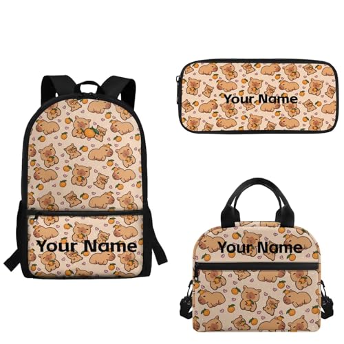 xixirimido Lot de 3 sacs à dos de 43,2 cm pour enfants, boîte à déjeuner, trousse à crayons pour école primaire, collège et lycée, Capybara Oranges Cœur, Taille unique, Sac à dos décontracté