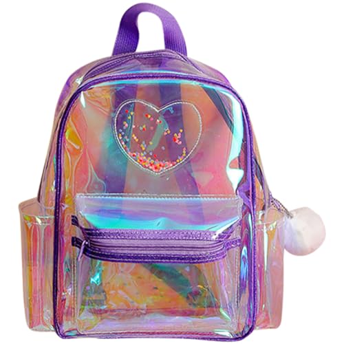 Warmhm Sac à Dos Transparent Cœur Pvc Fille Sac Dos École Maternelle Collège Concert Clair Petit Élégant Pratique Facile à Nettoyer