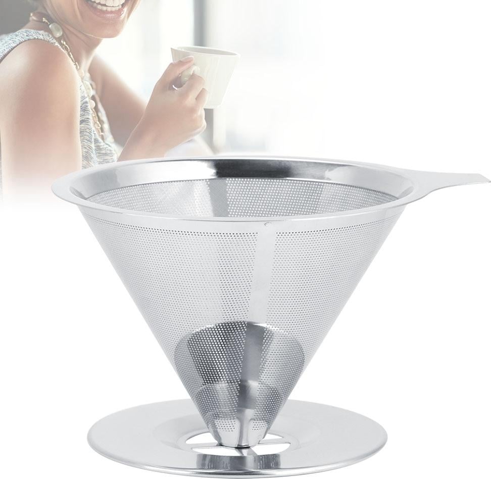 150 Mesh Cone Coffee Dripper Double Layer Stainless Steel Tea Filter for Home Coffee Shop Office