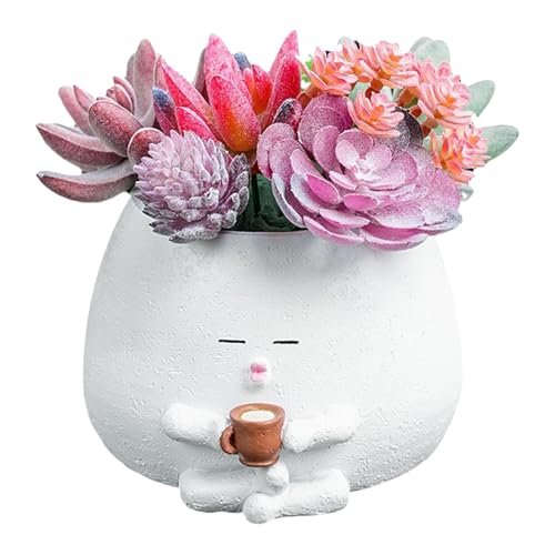 Générique Cute Pots for Plants - Resin, 12x14cm Desk Ornament Coffee Cylinder Flower Pot | with Drainage Holes Small Garden Statue Plant Holder for Indoor, Outdoor, Home, Office, Patio