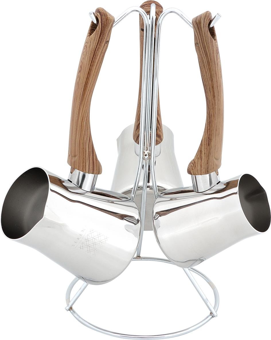 Serenk Definition 4 Pieces Turkish Coffee Pot Set, 18/10 Stainless Steel, Stove Top Coffee Maker, 2-3-4 Cups