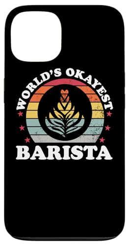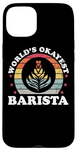 Retro Worlds Okayest Barista Cafetière Amusante pour Amateur de café Coque pour iPhone 15
