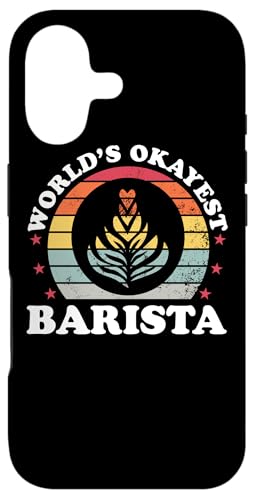 Retro Worlds Okayest Barista Cafetière Amusante pour Amateur de café Coque pour iPhone 16