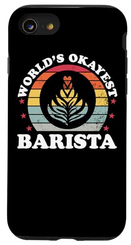 Retro Worlds Okayest Barista Cafetière Amusante pour Amateur de café Coque pour iPhone SE (2020) / 7/8