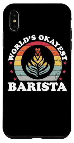 Retro Worlds Okayest Barista Cafetière Amusante pour Amateur de café Coque pour iPhone XS Max