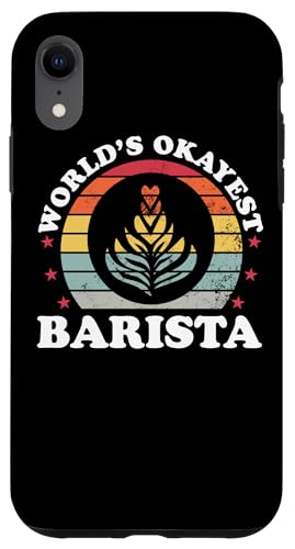 Retro Worlds Okayest Barista Cafetière Amusante pour Amateur de café Coque pour iPhone XR