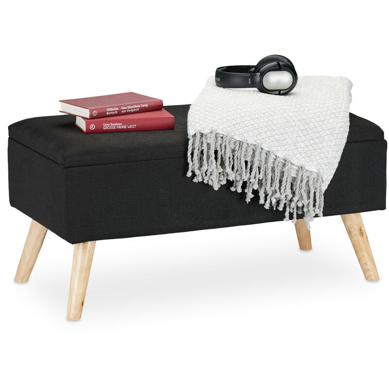 Relaxdays - Banc de rangement, rembourré, pieds en bois, coffre avec revêtement en tissu 39,5 x 79,5 x 39 cm, noir