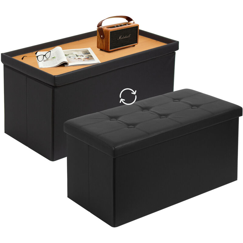 Todeco Coffre de Rangement avec 2 en 1 Couvercle, Banc de Rangement Pliable Similicuir, Ottoman avec Espace de Stockage, Pouf Rangement Interieur 80L pour Salon Chembre, Noir
