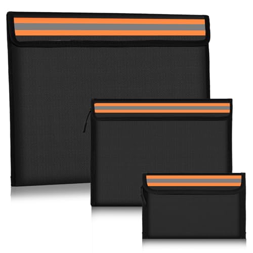 Joyan 3 Pochette Porte Document Ignifuge et Étanche, Sac Argent Sécurisé Anti Feu, Pochette Anti Feu pour Objets de Valeur, Passeport, Classeur Budget, Rangement Protection Optimale (Noir)