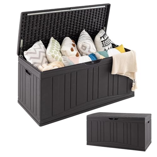 YITAHOME Coffre de Rangement Extérieure de 450L, Grand Rangement de Patio en résine Pour Oreillers d'extérieur/Outils de Jardin et Fournitures de Piscine, étanche, Verrouillable (Marron), FTPLDB-0019