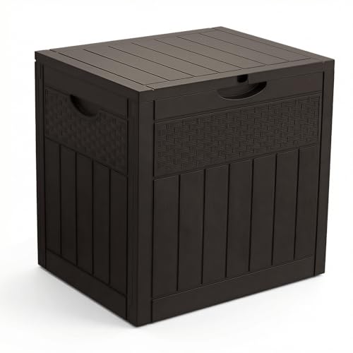 vounot® Coffre de Rangement Extérieur 126L Boîte de Jardin Étanche Anti UV Couvercle Verrouillable avec Poignées Encastrées 56 x 43 x 53 cm pour Jardin Terrasse Balcon Piscine Effet Bois Marron