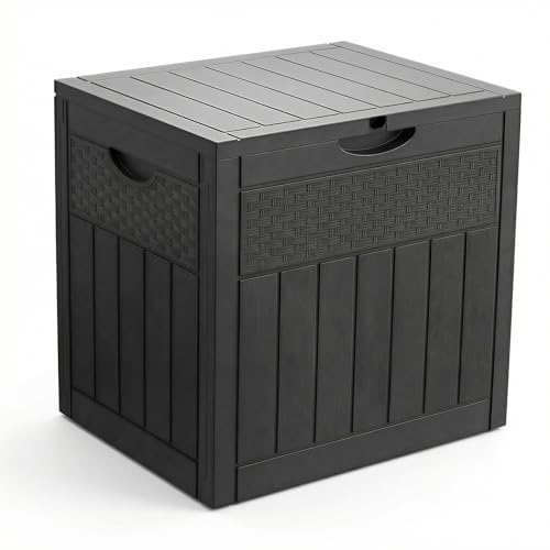vounot® Coffre de Rangement Extérieur 126L Boîte de Jardin Étanche Anti UV Couvercle Verrouillable avec Poignées Encastrées 56 x 43 x 53 cm pour Jardin Terrasse Balcon Piscine Effet Bois Noir