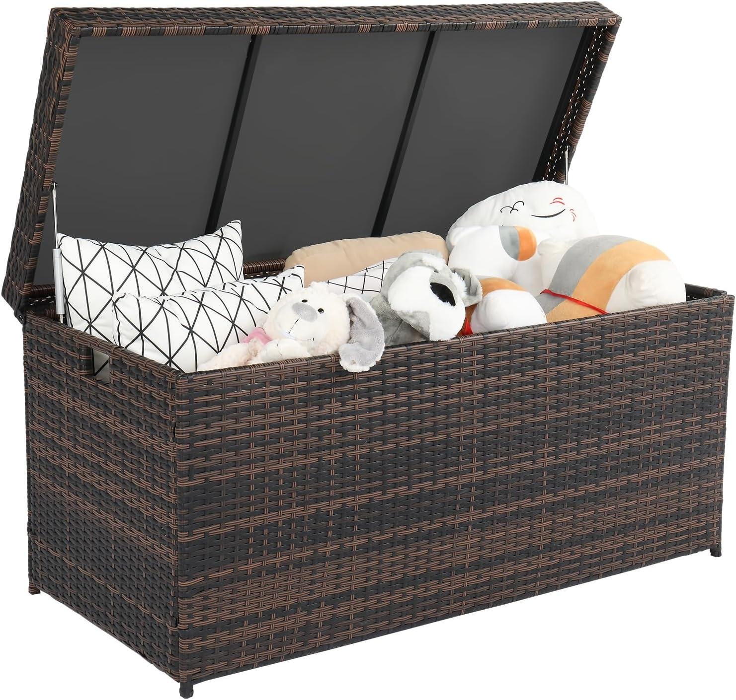 Casaria® Coffre de jardin extérieur XXL Marron - Malle de rangement en Polyrotin avec roulettes 270 L, étanche avec Vérin à gaz 117x53x60 cm pour Jardin, Balcon ou Terrasse