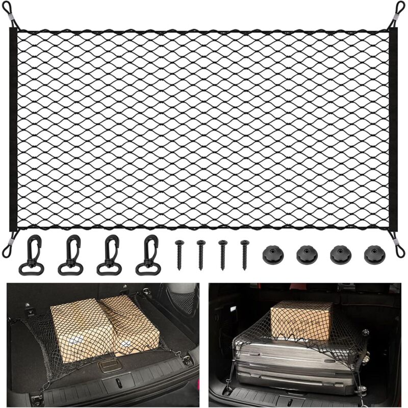 Filet de rangement extensible pour coffre de voiture, accessoire extérieur, réglable et élastique, avec crochet, pour SUV, voitures et camions (90 x