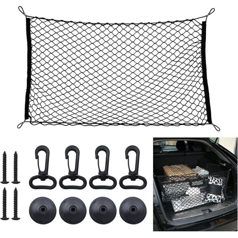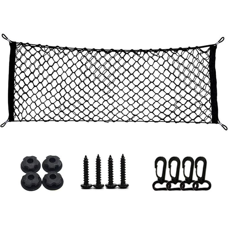 Filet de Coffre de Voiture, Filet de Rangement pour Coffre de Voiture avec 4 Crochets, Bagages Fixe en Flexible Nylon Élastique, Convient à la