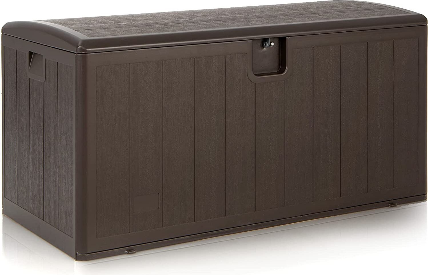 HOMASIS 96L Coffre de Rangement Imperméable, Boîte Extérieur en PP, Banc de Rangement Verrouillable pour Cour, Jardin, Bord de Piscine, Terrasse (brun)